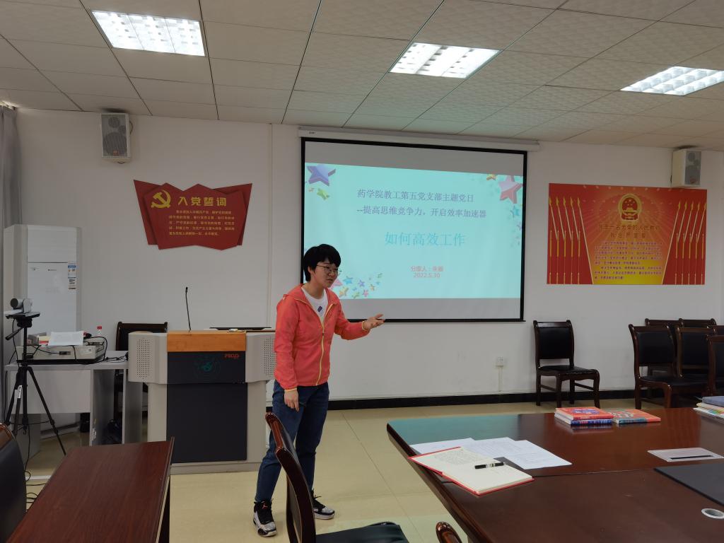 为做好“我为群众办实事”实践活动,帮助yl1111永利集团教工第五党支部及联系教研室教师寻找缓解工作与生活压力的方式方法。公司教师工作部与yl1111永利集团教工第五党支部于2022年5月30日下午在药学楼1-506会议室,联合开展了“提升思维竞争力,开启效率加速器”活动。公司党委副书记、第五支部负责人吴庆同志主持会议,公司党委书记袁泽利、院教学督导组组长胡庆红教授、支部全体党员及所属教研室无课教师参加了本次活动。