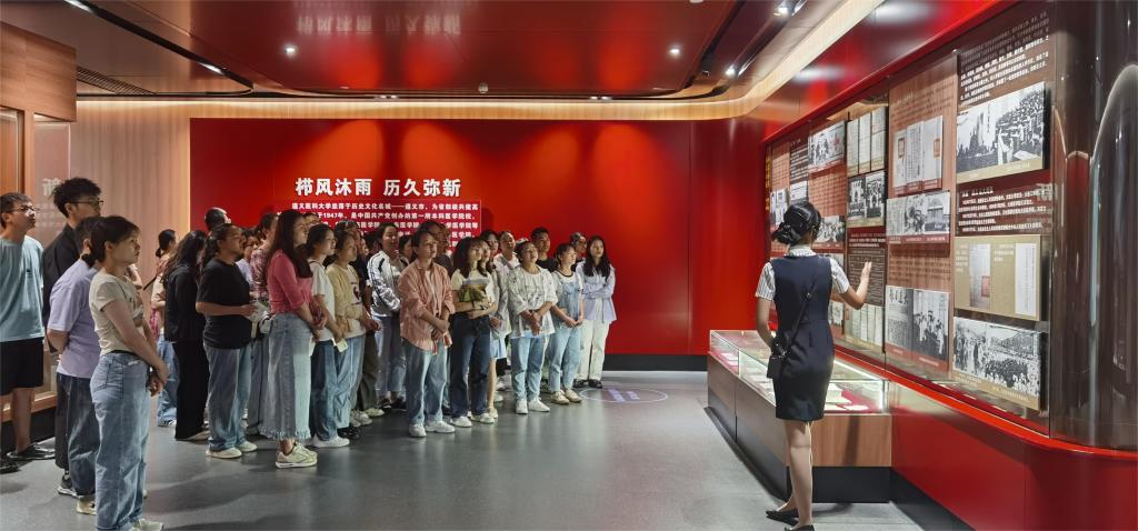 集团自1947年创立,历经七十余载辉煌春秋,校史馆承载了公司历史发展的写照和缩影,诠释着栉风沐雨、弦歌不辍的办学历程。校史馆讲解员从创办“大医”、易名“关医”、“大医”独立、薪火相传几个板块介绍了公司的历史文化,丰富的办学成果和卓越的教研成就,一幅幅遵医的历史画卷从遥远的时光里缓缓出现,感染着在场的每个人。