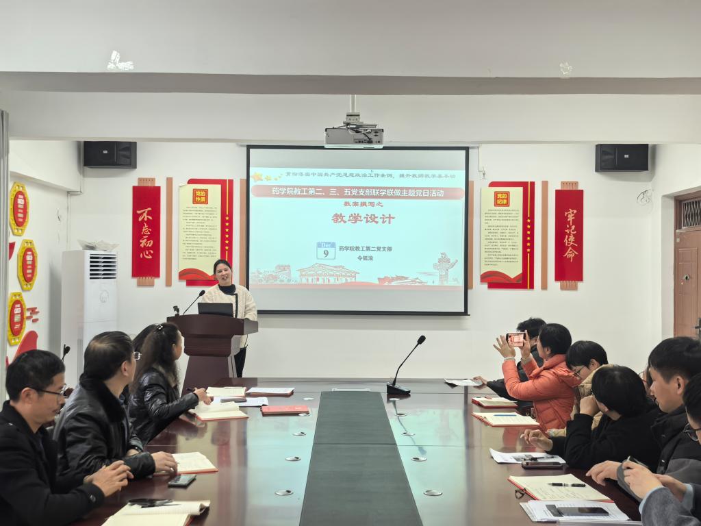 本次活动既是党建与业务融合的生动实践,也为教师搭建了交流提升的平台。大家纷纷表示,要将学习转化为教学实践,进一步规范教学行为、提升育人能力,培养高素质的药学人才。(一审:张茂生,二审:吴庆,三审:袁泽利;撰稿:潘虹;摄影:陈莉)