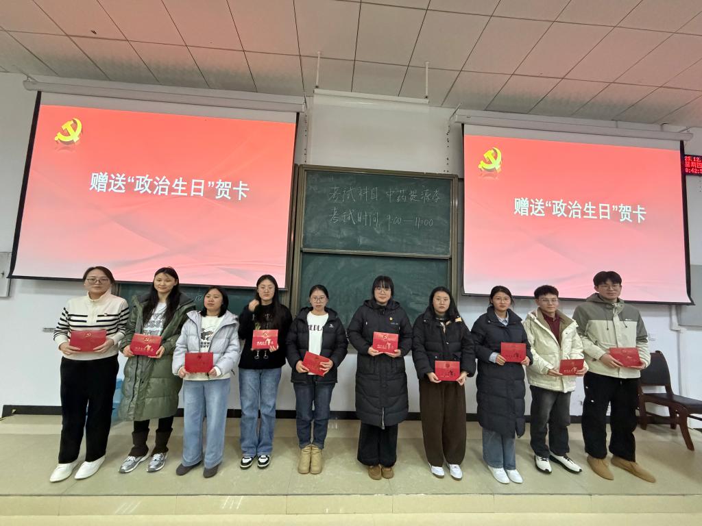 在学习了习近平总书记理论文章《推进党的自我革命要做到“五个进一步到位”》后,为本季度入党的党员举行了简朴而温馨的集体“政治生日”仪式,支部书记向过“政治生日”的党员赠送了精心制作的生日贺卡。随后,支部书记为新入党的党员佩戴党员徽章,全体同志面对党旗郑重地举起右手庄严宣誓。