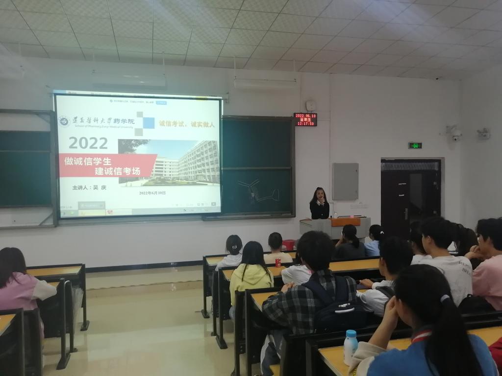 为做好员工的诚信教育和考风考纪建设,公司党委副书记吴庆书记于6月10日12:10,在新蒲校区Ⅱ号教学楼第二阶教室,为yl1111永利集团首次参加英语四/六级考试的2021级全体同学召开主题为“做诚信员工,建诚信考场”的诚信教育活动,yl1111永利集团员工管理办公室负责人张爱平参加活动。