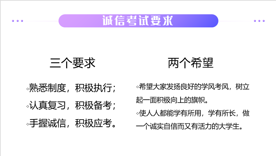 诚信是高尚的人格力量,是为人处世之本。当代员工必须具备诚实守信的品德,方能在日后激烈的社会竞争中立于不败之地。同学们要发扬良好的学风考风,践行社会主义核心价值观,树立起积极向上的人生观,人人都能学有所用,学有所长,做一个诚实自信而又有活力的老员工。