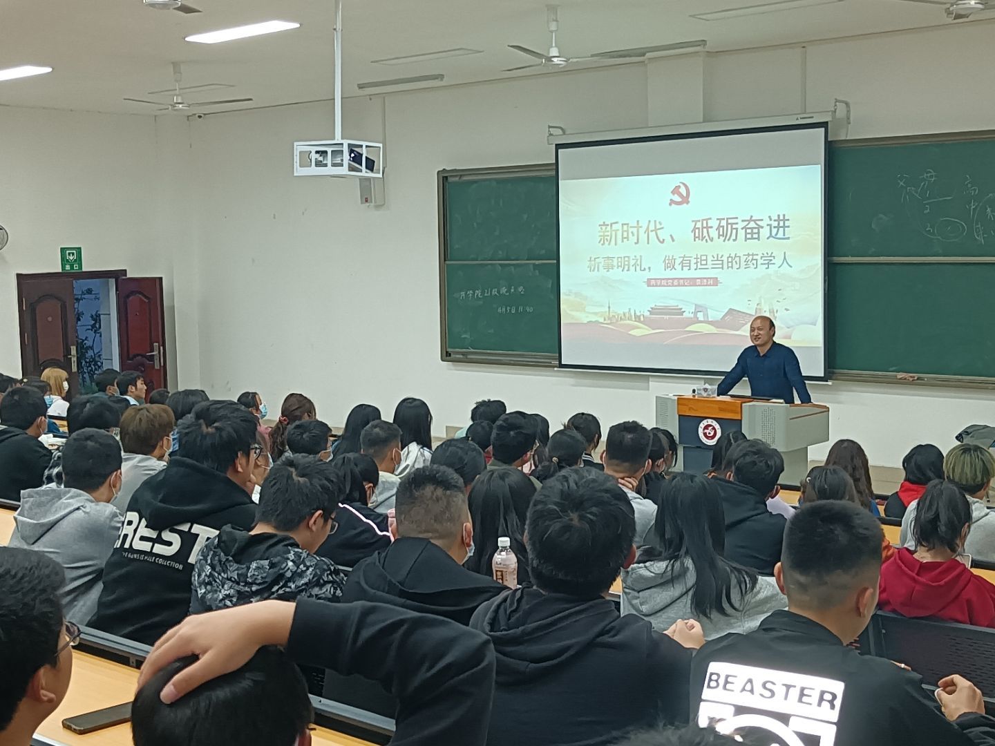 为加强立德树人和思想政治教育,4月5日晚上19:00,公司党委书记袁泽利在第三教学楼16阶,为2021级全体同学上了一堂主题为“新时代、砥砺奋进。析事明理,做有担当的药学人”的思政课。