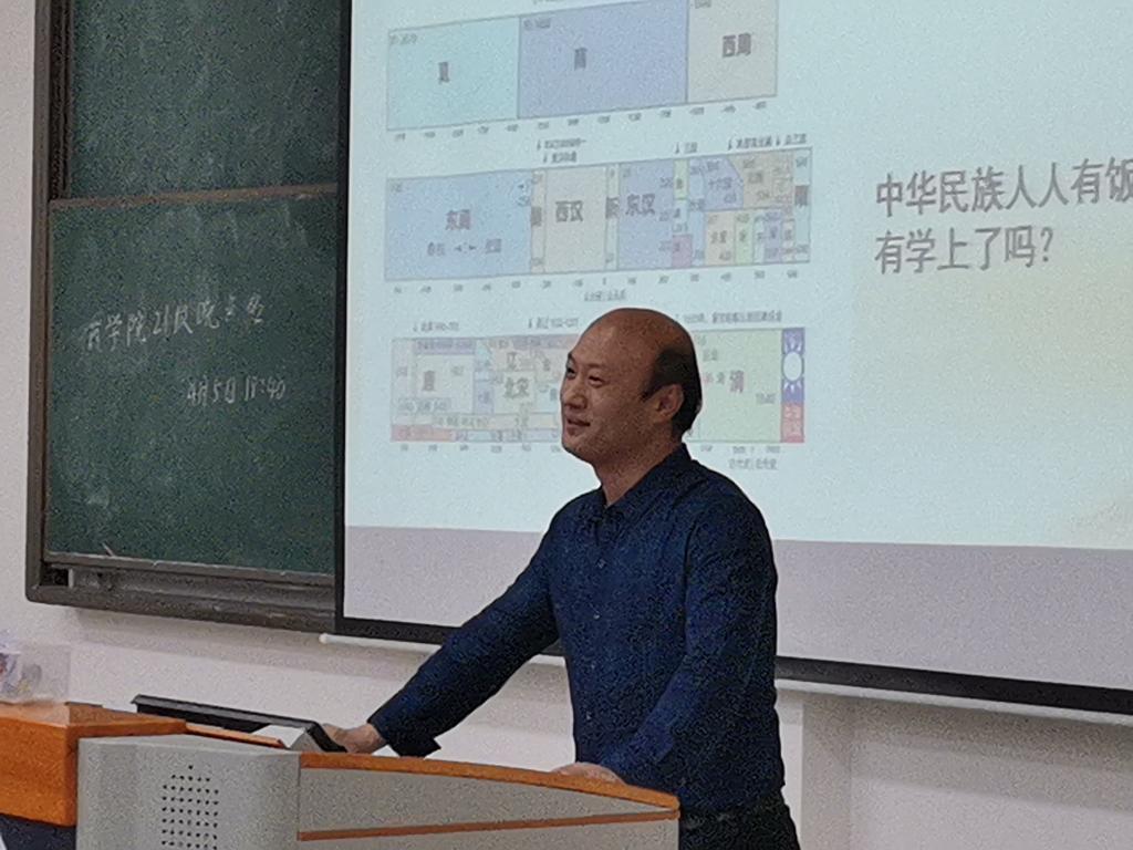 袁泽利书记首先通过忆往昔看今朝,赞叹祖国日新月异的飞速发展的同时,倡导年青一代要积极进取,努力学好专业知识,提醒同学们珍惜时光,不负韶华。接着讲述了药学专业的作用与发展,运用了身边的例子来鼓励同学们认真学习,成为对社会有贡献的人。最后着重强调了网络安全的重要性,希望同学们正确运用网络,不要沉迷于网络,用好网络资源为自己增值。