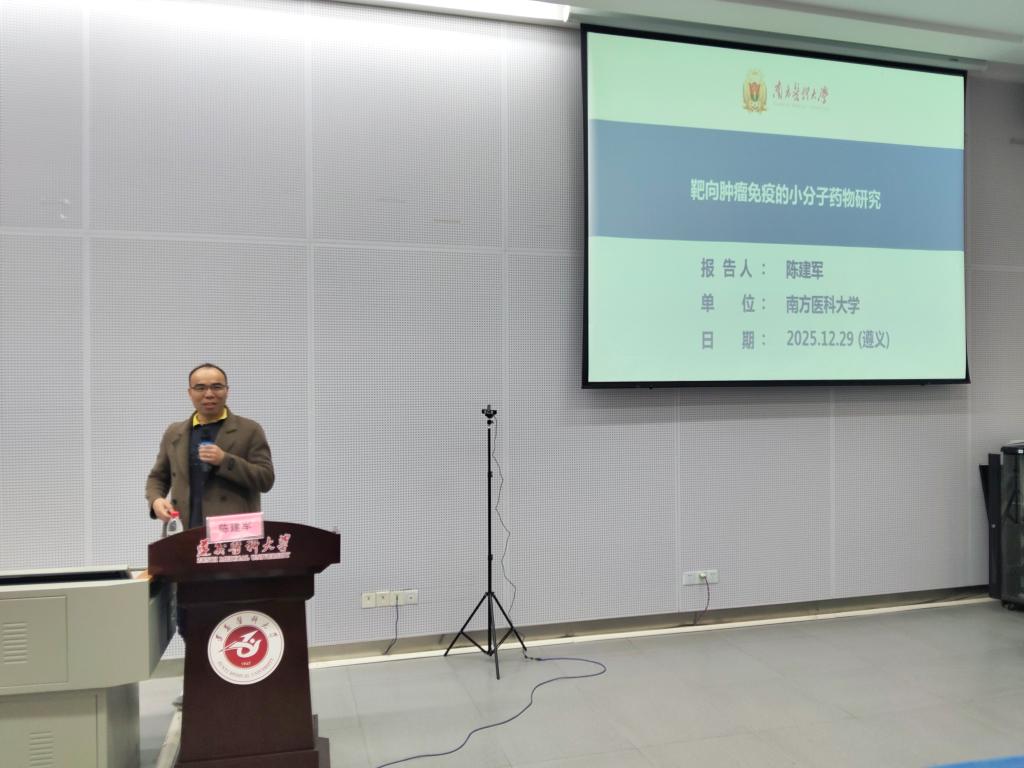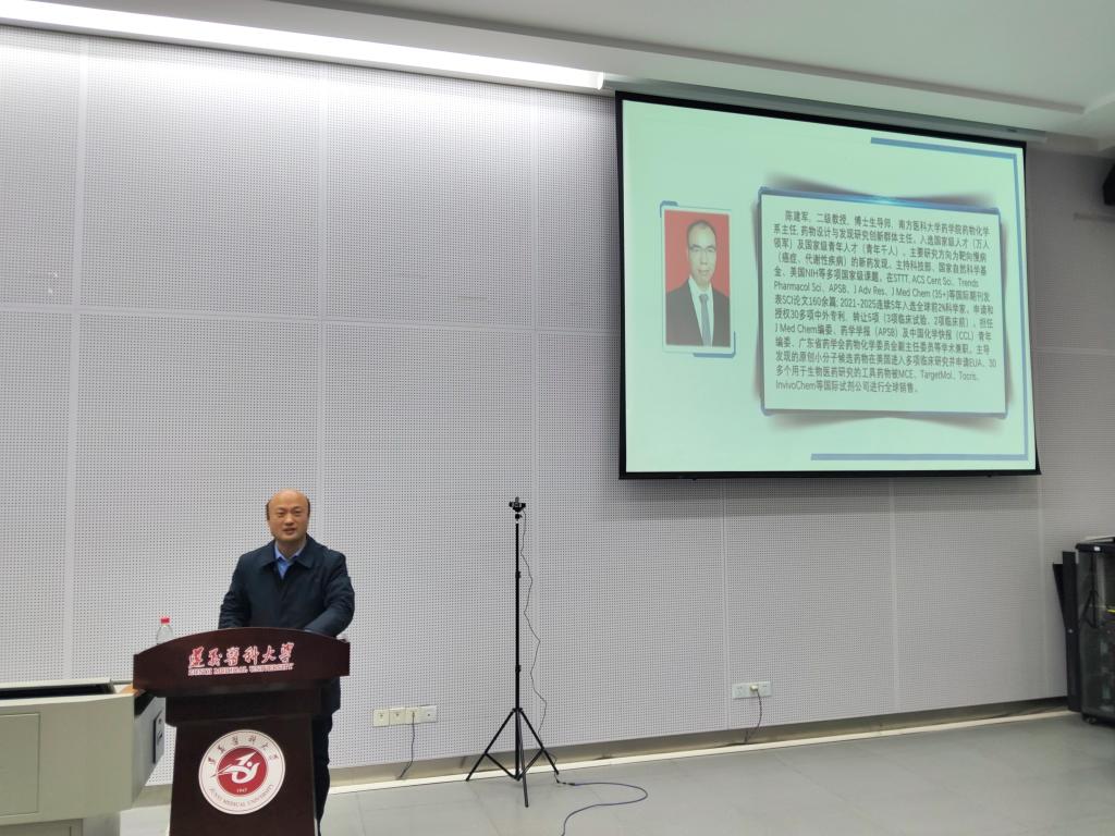 陈建军为师生带来了“靶向肿瘤免疫的小分子药物研究”的研究进展和诠释,并围绕未来新药研发如何做原创性研究提出了新的见解。