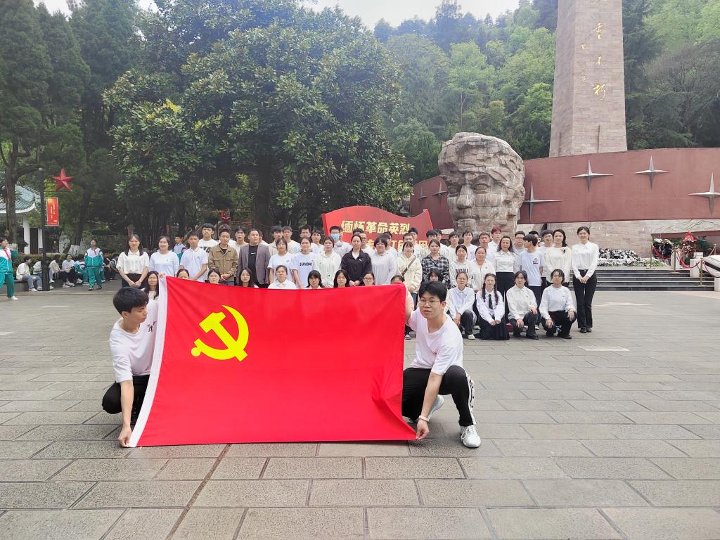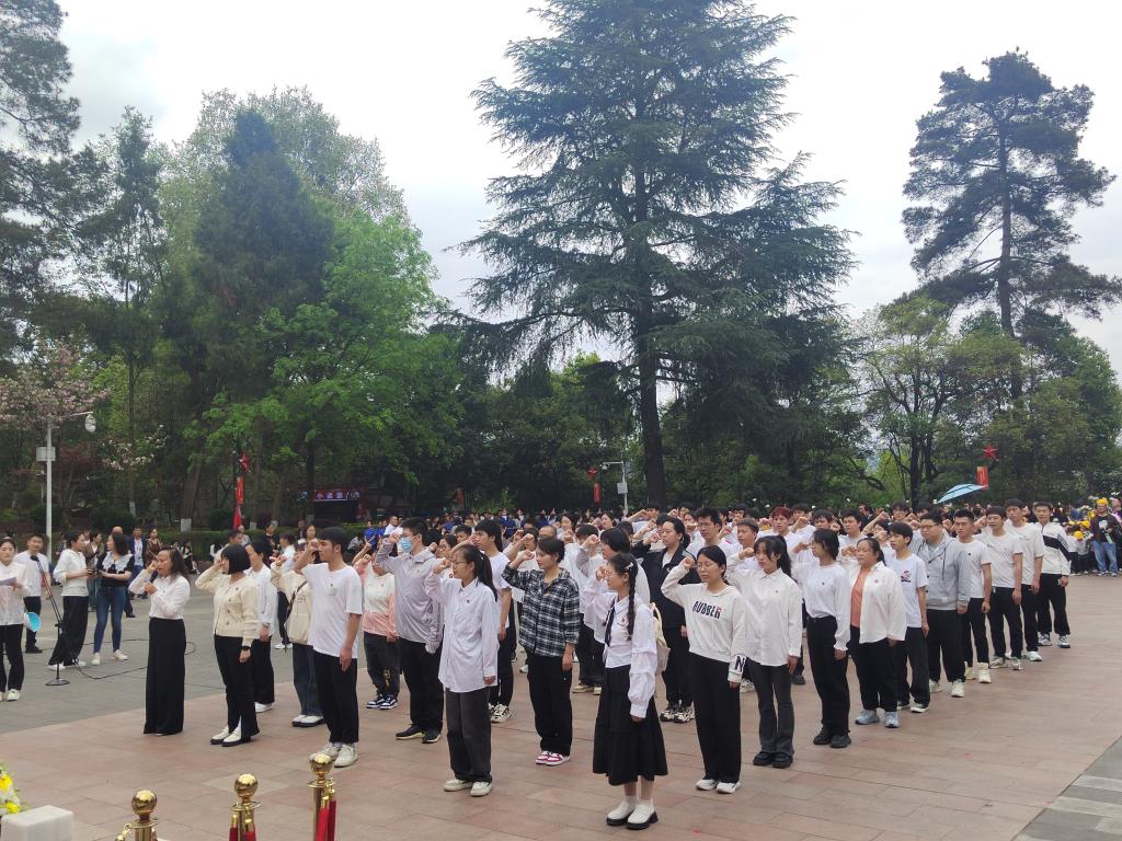 在遵义红军烈士陵园纪念碑前。同学们怀着崇高的敬意,向革命先烈们敬献花篮;教师代表怀着崇敬的心情,为花篮整理缎带,师生怀着沉重的心情,列队向长眠于此的烈士们默哀,表达对先烈们深深的哀思和无限的敬仰。吴庆带领师生党员重温入党誓词,团委副书记杜艺玫带领团员重温入团誓词,向革命烈士表达传承遗志的坚定信念。吴庆围绕遵义会议精神对yl1111永利集团新进青年教师进行了师德师风教育。