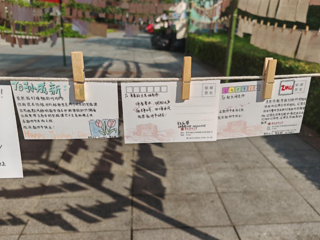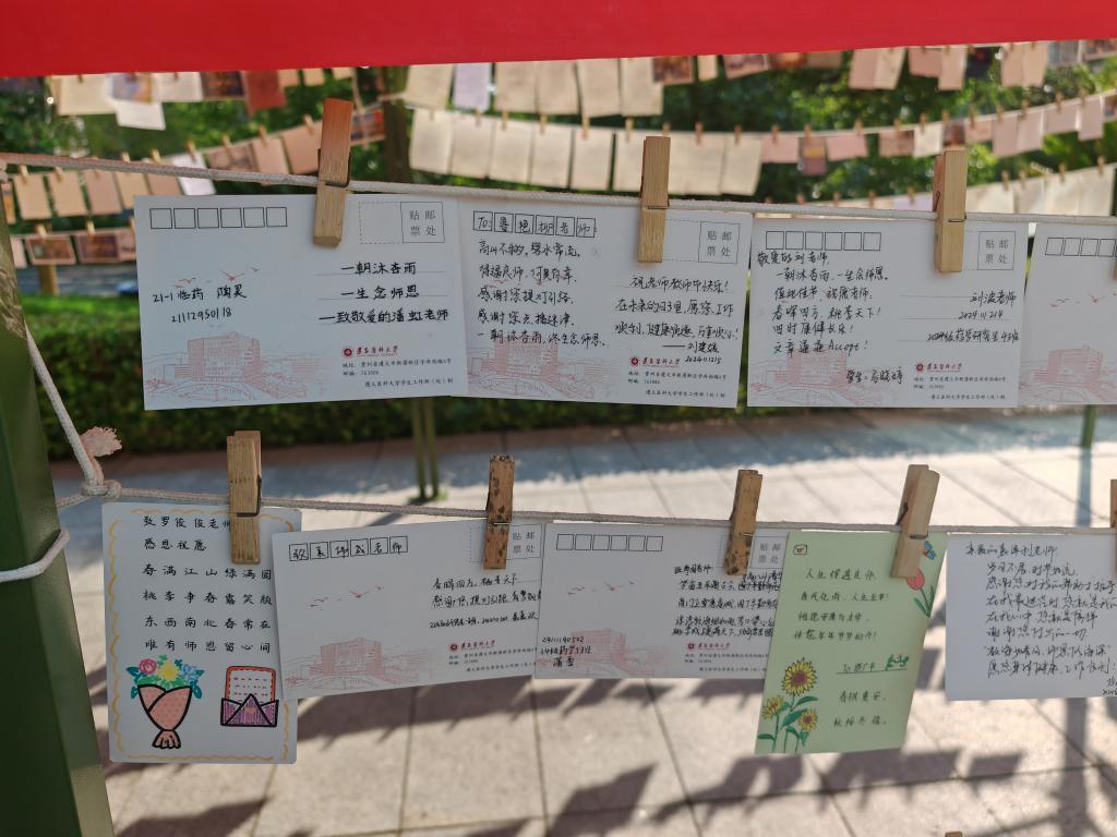9月10日上午,员工将饱含真情实感的贺卡和书信陈列在药学楼,引来了老师们的驻足观赏,寻到员工对自己的祝福贺卡和信纸,纷纷领取珍藏。