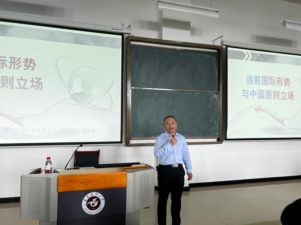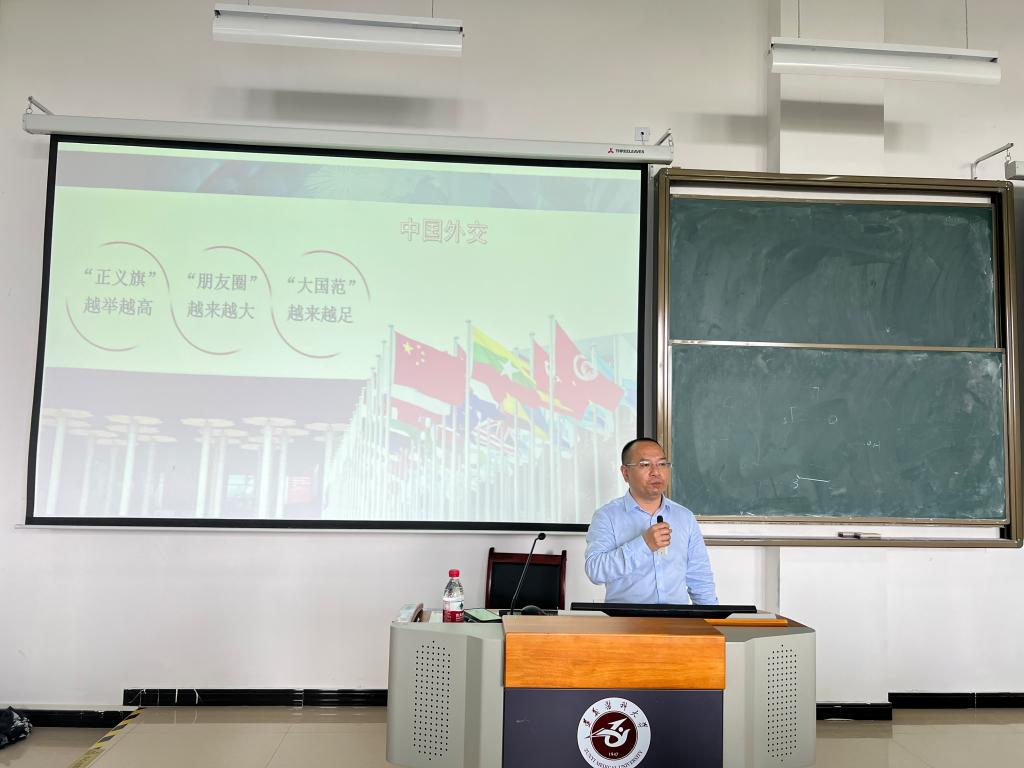 龚其海以《当前国际形势与中国原则立场》为题,分别从“动荡的变革世界”“全球瞩目的热点”“大国风范的外交”三个方面展开了详实而生动的讲解。