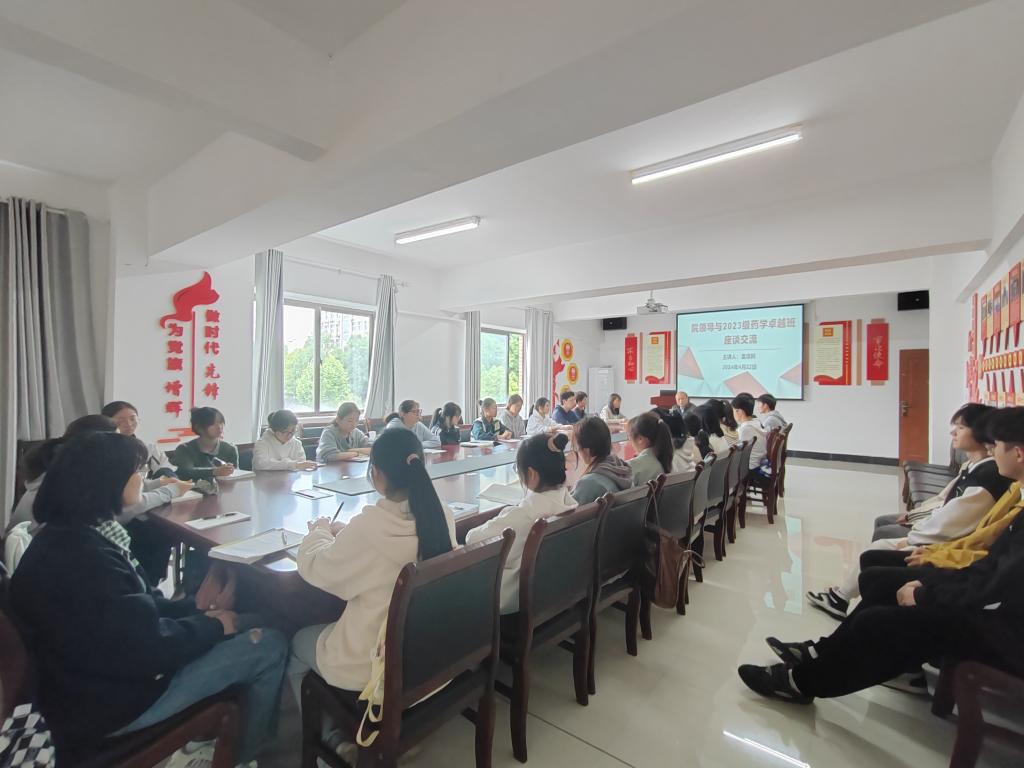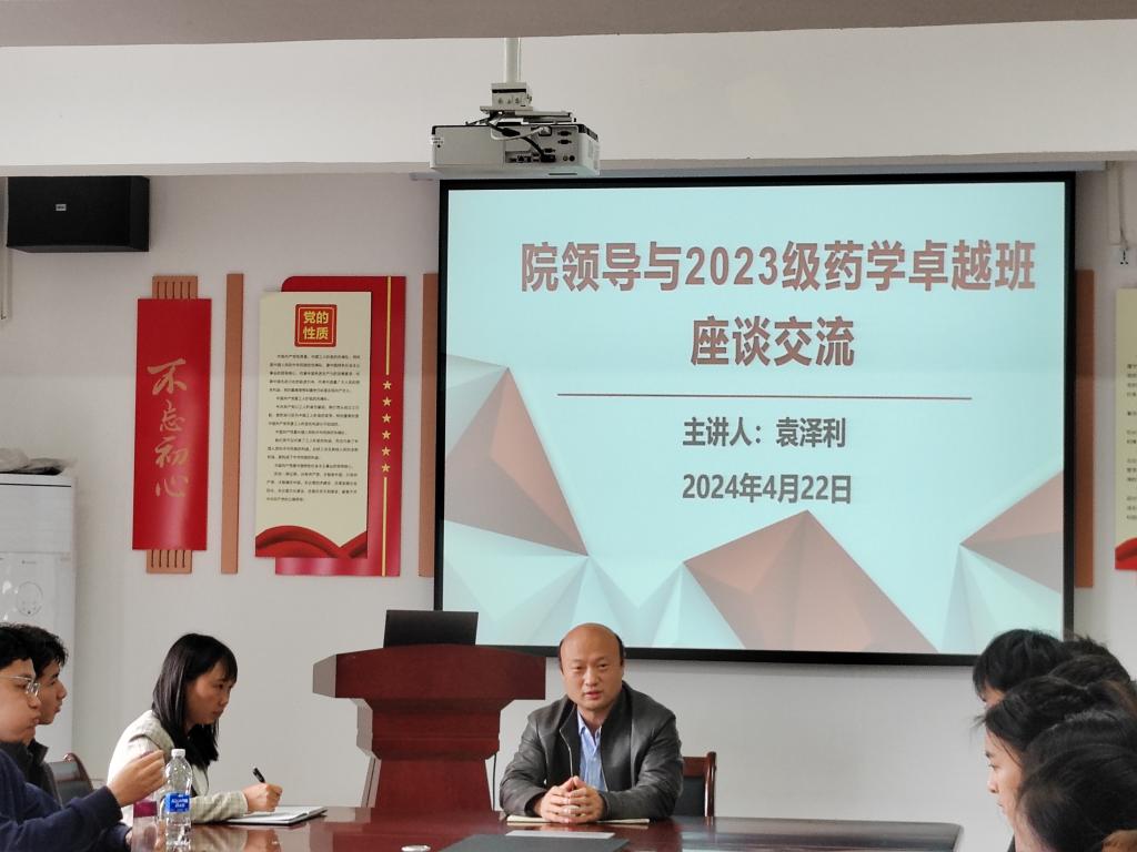 为做好药学卓越班人才培养,2024年4月22日下午,公司党委书记、执行经理袁泽利在心远社区党团活动室与2023级药学卓越班进行了座谈交流。员工辅导员蒋永梅及卓越班全体同学参加了座谈。