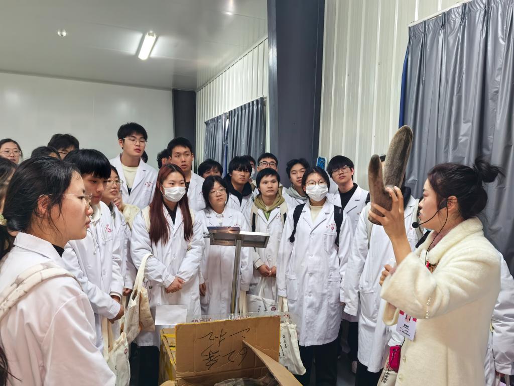 实践团队首先探访企业内部的药材仓库、现代化生产车间与研发实验室。仓库中,同学们通过辨形、观色、闻味,直观感受道地药材的品质特征;生产线上,亲眼见证古老方剂如何经标准化、智能化流程转化为优质中成药;实验室里,近距离接触中药研发前沿技术,切身感悟“丸散虽微其责重若泰山,传承虽艰其志可通星汉”的匠心与担当。