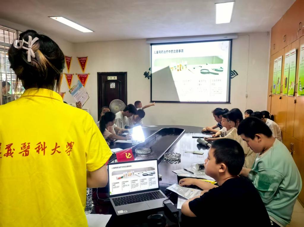 在杜艺玫、况安香两位指导老师带领下,18名yl1111永利集团本科生组成的实践团队紧扣“服务”主题,精心设计“科普+实践”公益服务模式,14日通过图文展板系统讲解药品分类、药品批准文号识别及合理用药时间等核心知识,以微型讲座聚焦“生病该不该吃药”“警惕过期药品危害”等话题,破解日常用药盲区,并于15日走进乡村/社区家庭,以问卷调查从“家庭用药安全”“老年人用药安全”“儿童用药安全”三个维度深入了解家乡用药安全现状。实践团队坚持问题导向,针对重点人群开展精准服务,16日设立“夕阳红”专场,深入社区及家庭为老年群体宣讲慢性病安全用药原则,分发定制化宣传材料,减少多重用药与剂量错误风险,17日开展“小幼苗”专场,面向儿童家庭普及“儿童用药无小事”理念。活动核心环节聚焦家庭药箱科学管理,团队成员连续两天上门,协助居民家庭整理药品、优化存储环境、标注有效期,杜绝过期药隐患,培养家庭“用药明白人”,推动科普成效长效化。实践尾声,团队将七日活动核心知识点、常见误区解析及实用贴士汇编成《家乡安全用药指南》,为当地居民提供便捷参考。正值暑期,同学们还积极参与社区/乡村防溺水消防安全宣传,走入家庭播放防溺水宣传片。