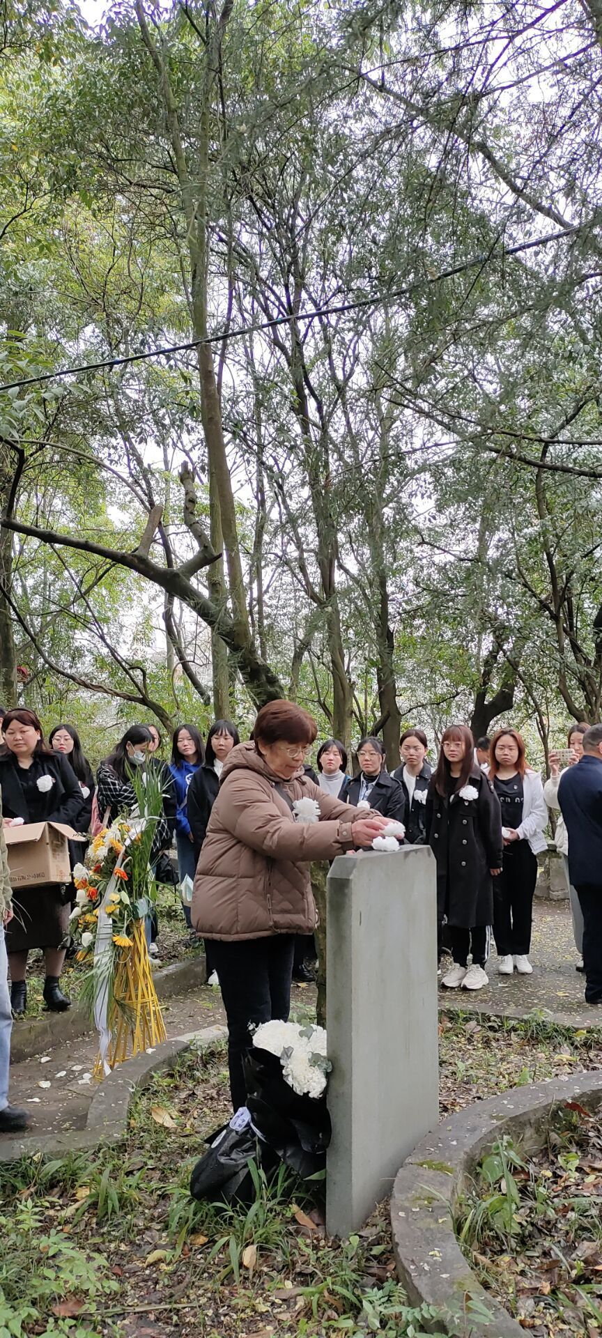 在庄严肃穆的墓碑前,师生队列整齐,公司关工委田宗远教授带领师生共同追忆了陈荣殿、伍律两位先贤无私奋斗的一生。