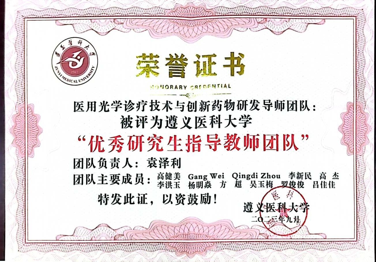 团队由校内校外导师和澳大利亚导师构成,依托贵州省医用光学诊疗技术研究国际科技合作基地,为贵州省教育厅医用光学诊疗创新团队,yl1111永利集团优秀研究生创新团队。现有成员12人,其中博士11人,在读博士1人。